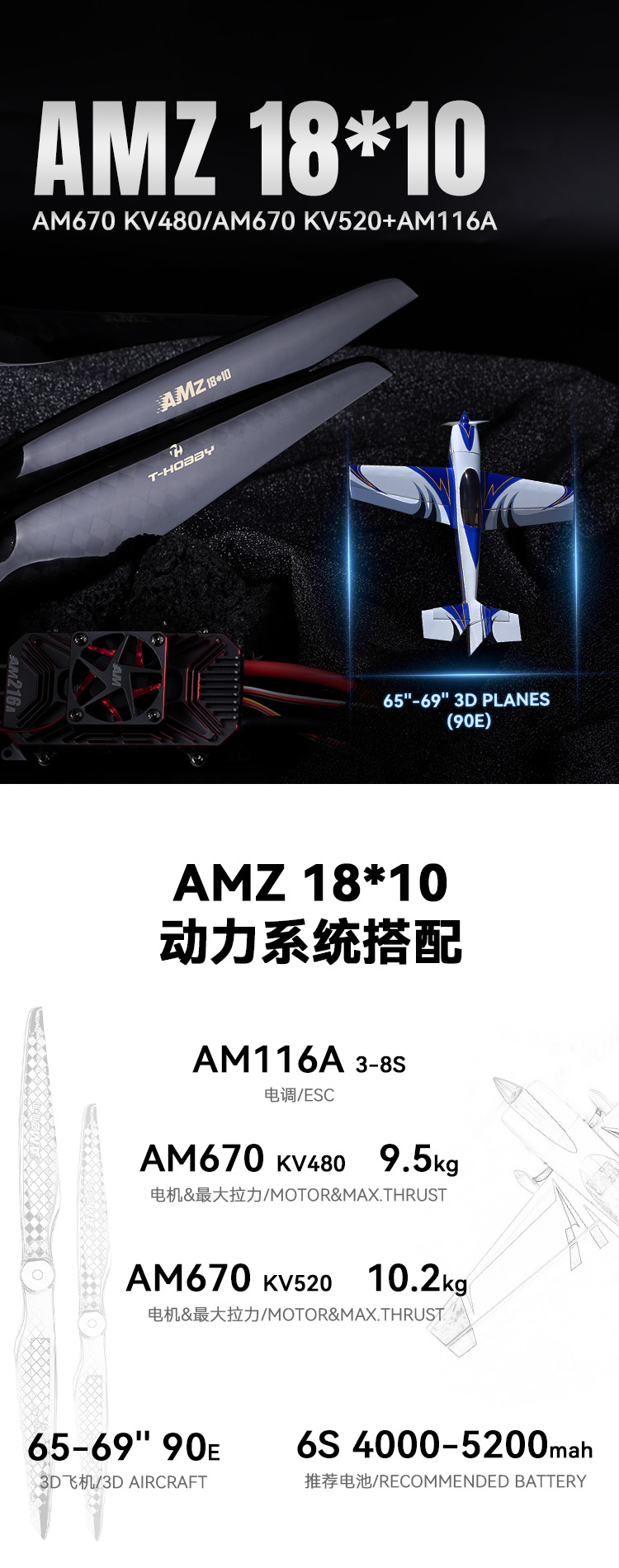 AMZ18x10寸碳纤维 固定翼3D花飞高性能桨叶
