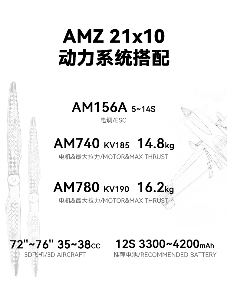AMZ21*10寸 碳纤维 固定翼3D花飞高性能桨叶