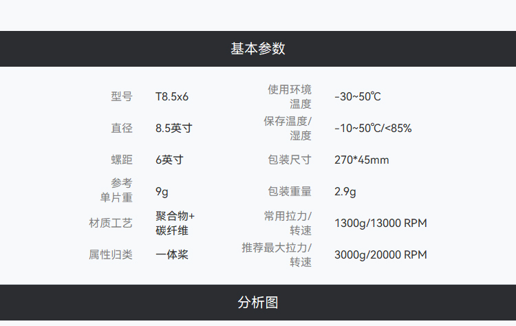 固定翼T8.5x5 碳纤维桨叶适配GT2306 电机+GA 45A ESC