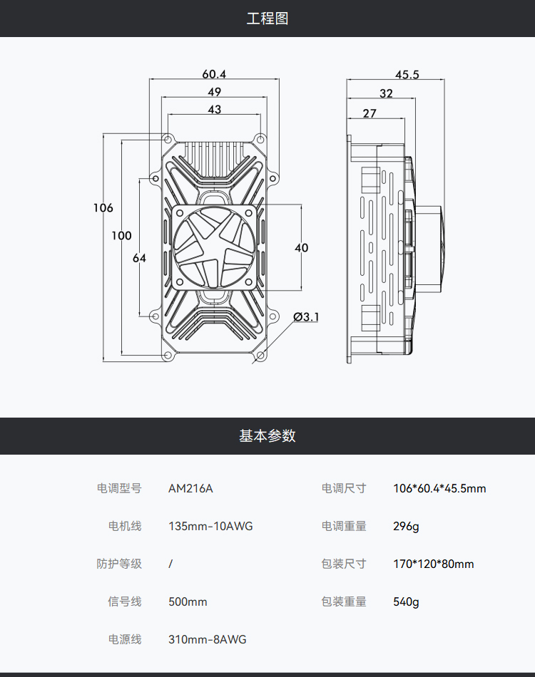 AM216A电调84-96寸3D户外航模电调 支持5-14S 3D飞行