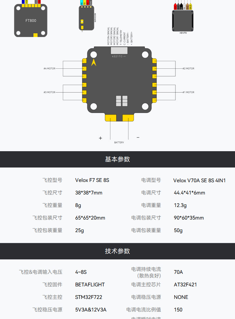 F7SE V70A 8s飞塔 四合一8S穿越机电调飞行竞速