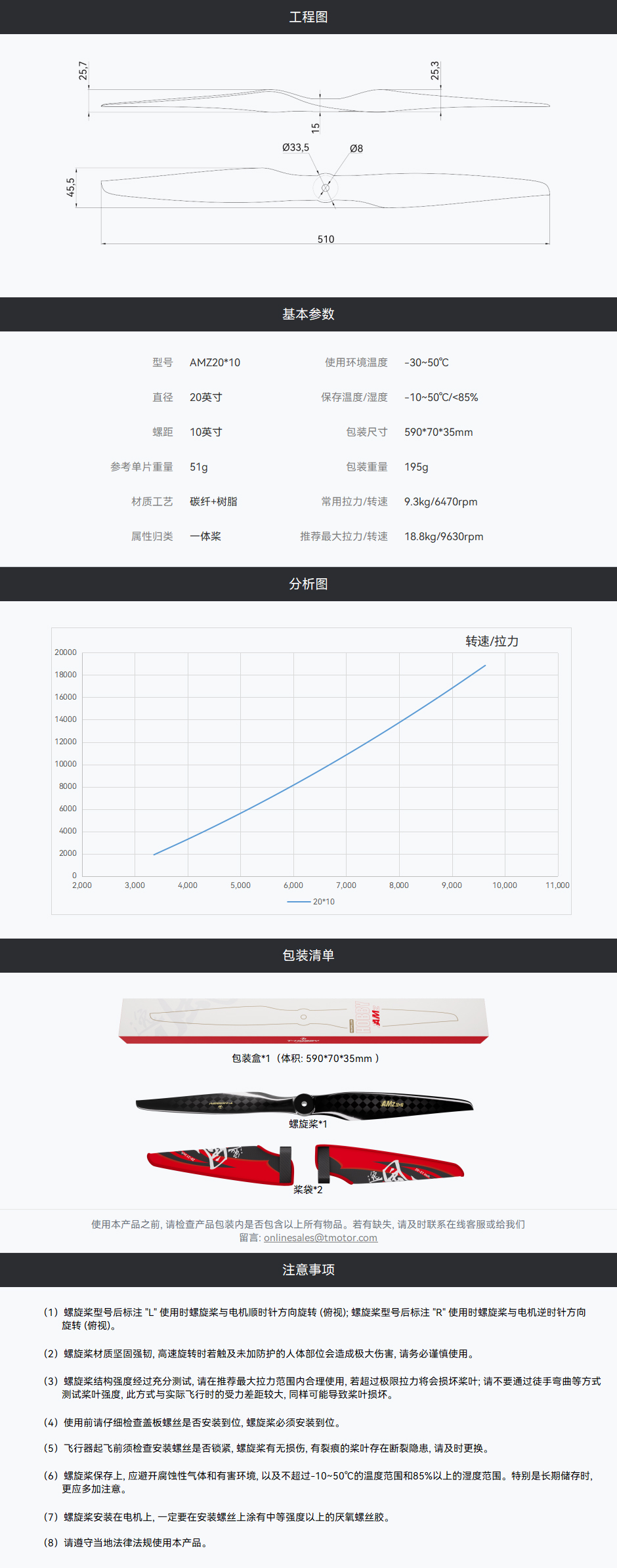 AMZ20x10寸碳纤维 固定翼3D花飞高性能桨叶