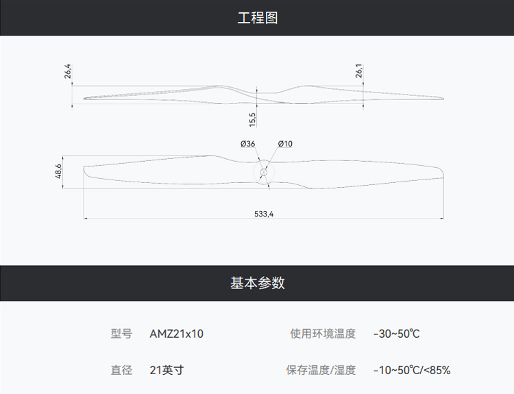 AMZ21*10寸 碳纤维 固定翼3D花飞高性能桨叶
