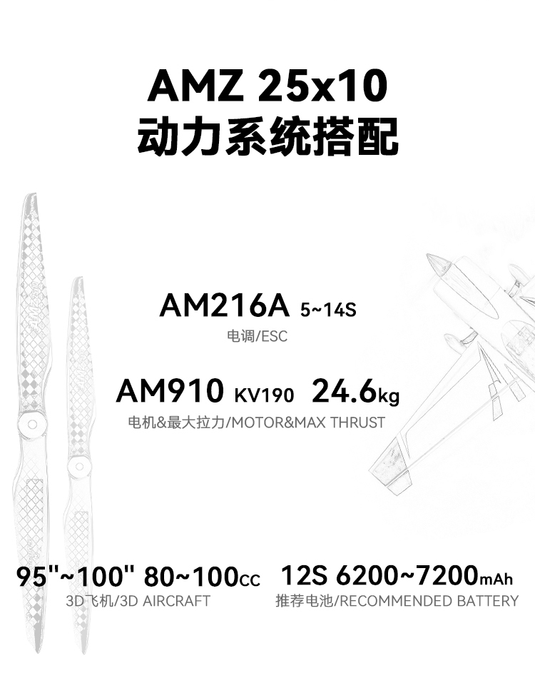 AMZ25*10寸 碳纤维 固定翼3D花...